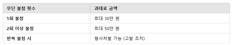 📌 정당한 사유 없이 2회 이상 불참하면 벌금이 증가할 수 있음